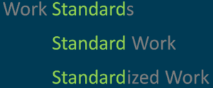 Work Standards refers to having a standard, or one best way, to do our work. Standard Work or Lean Standard Work is the best combination of people, process, technology and tools (including machines) to be productive, and Standardized Work is a combination of the first two in addition to training and sustaining – Got it!